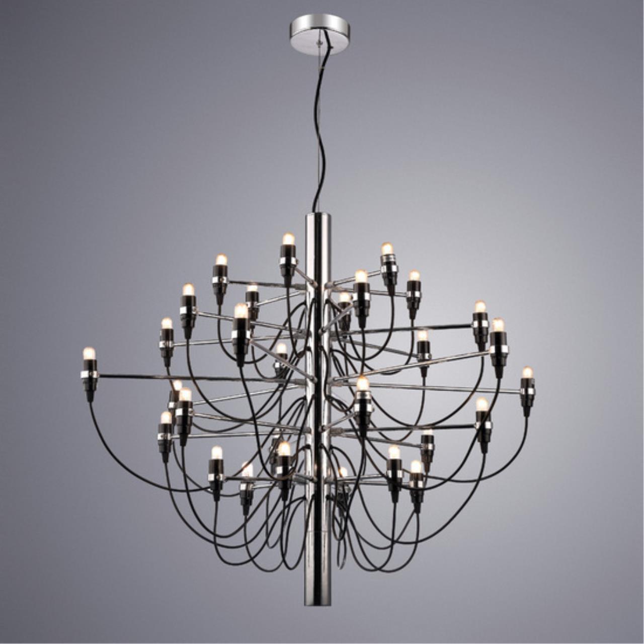 Люстра Divinare 8030/02 LM-50 серии MOLTO. Даст комфортный свет в комнате. Размеры 1.1x1.1x0.9 m. Диаметр 1.1 m Параметры пылевлагозащиты IP — 20. Форма изогнутая. Без плафона без плафона, а материал/цвет арматуры металл/хром. Использует 50 ламп с цоколем E14. Площадь освещения охватывает 30 m². Идеально подходит для гостиной. Страна происхождения бренда — ИТАЛИЯ. Вес с упаковкой 8.6 kg