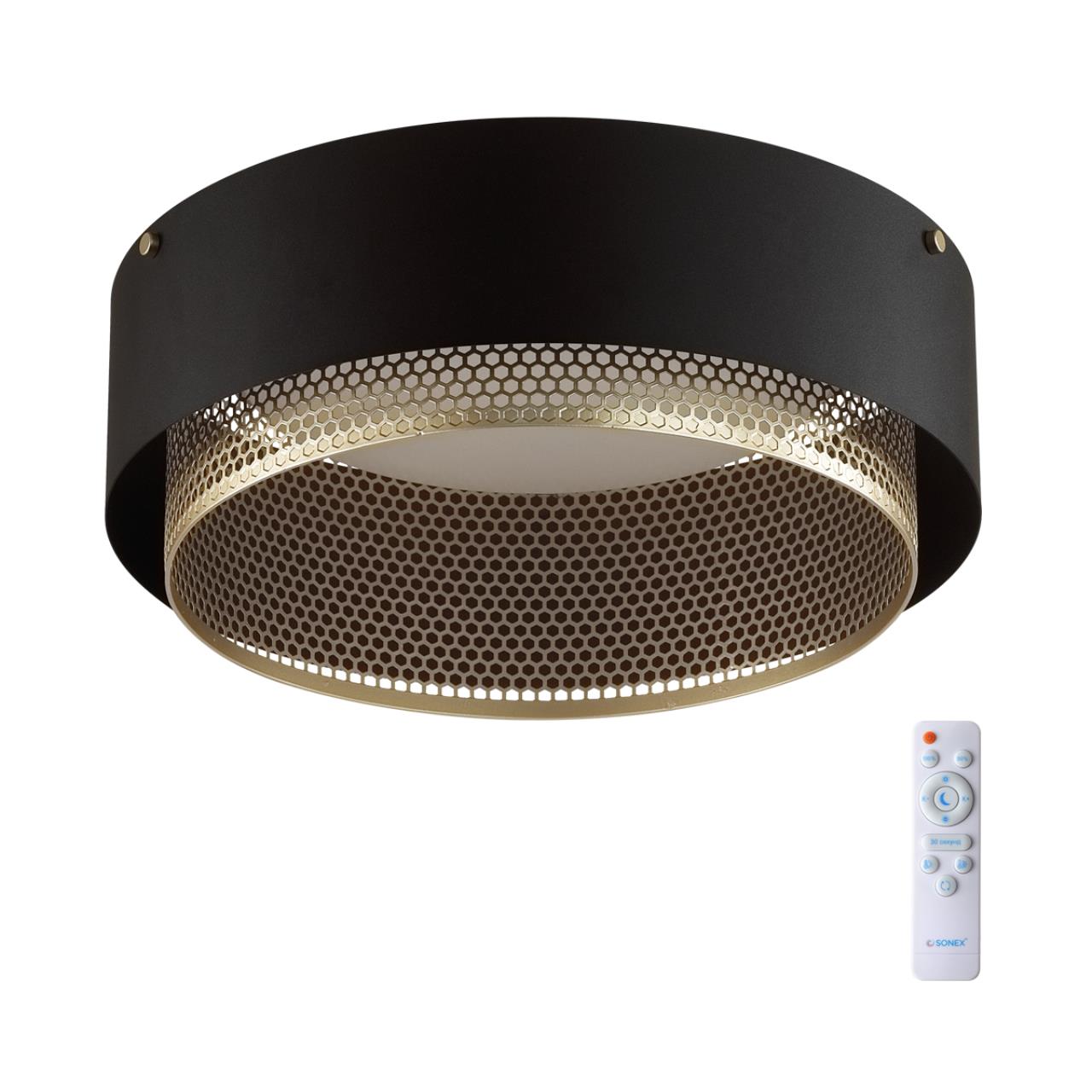 Сочетание угольно-черного цвета и цвета золотого шампанского - одно из самых классических и красивых в интерьере. Новая серия ANTEY - это актуальное прочтение классических форм и сочетаний. Уникальность светильников этой серии в их универсальности - светильник можно использовать как потолочный или подвесной. Чтобы установить светильник как подвесной необходимо отдельно приобрести подвесное крепление. Корпус модели  ANTEY имеет два контура - внешний из черного металла и внутренний с перфорацией в виде пчелиных сот из металла цвета шампанского. За счет крупных ячеек перфорации внутреннего контура свет распределяется в пространстве под более широким углом. Плафон изготовлен из гладкого матового пластика с хорошими светопропускающими характеристиками.