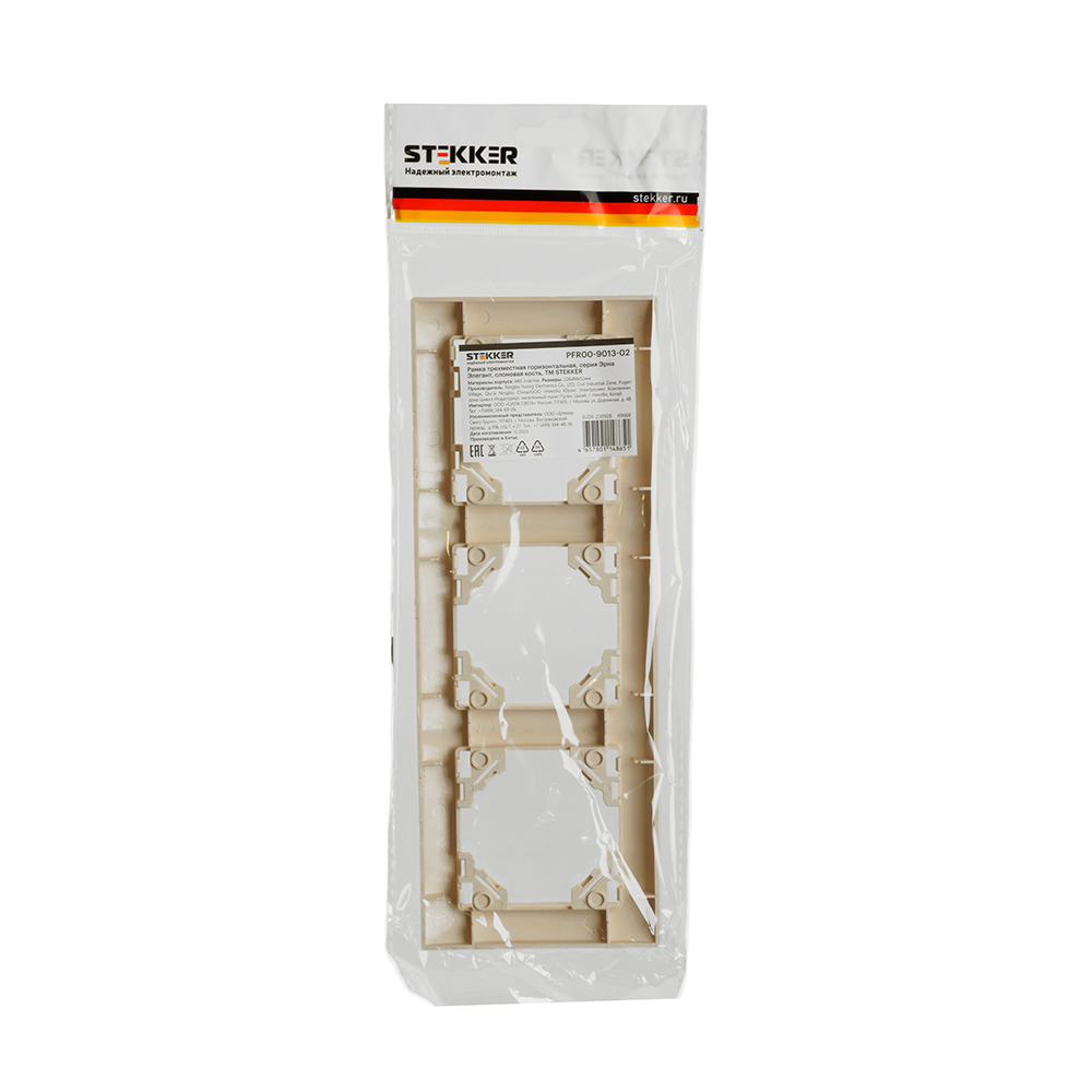 Рамка STEKKER PFR00-9013-02 (расстояние между монтажными отверстиями: по гориз. - 200мм, по вертик.- 45мм) на гнездо, , . Материал: ABS пластик, цвет слоновая кость, размер 225*83*11мм. Номинальное напряжение , номинальный ток , диапазон рабочих температур ,