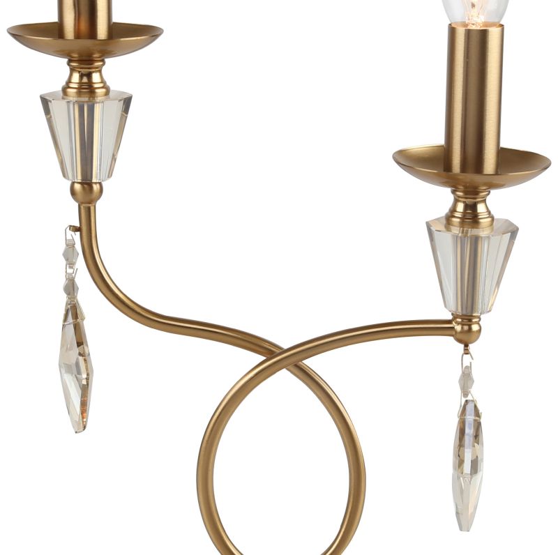 Светильник настольный из коллекции Grace / Грейс выполнен из металла, гальванизированного в цвет бронзы, и декорирована массивами хрусталя и хрустальными подвесками в форме ромба цвета шампань.