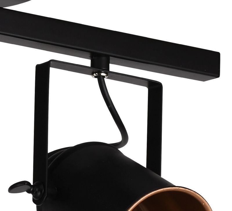 Споты на штанге из коллекции Neider / Нейдер имеют металлическую арматуру, окрашенную в черный цвет. Плафоны изнутри окрашены в цвет золота. Благодаря установленному поворотному механизму можно изменять направление света.