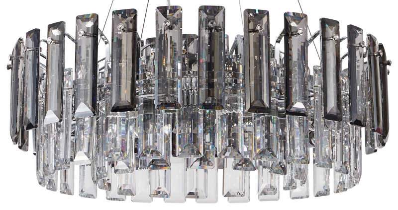 Люстра подвесная из коллекции Ton / Тон выполнена из металла, гальванизированного в цвет хрома, и декорирована прозрачным и дымчатым хрусталем высшей категории прямоугольной формы. Люстра выглядит респектабельно и современно.